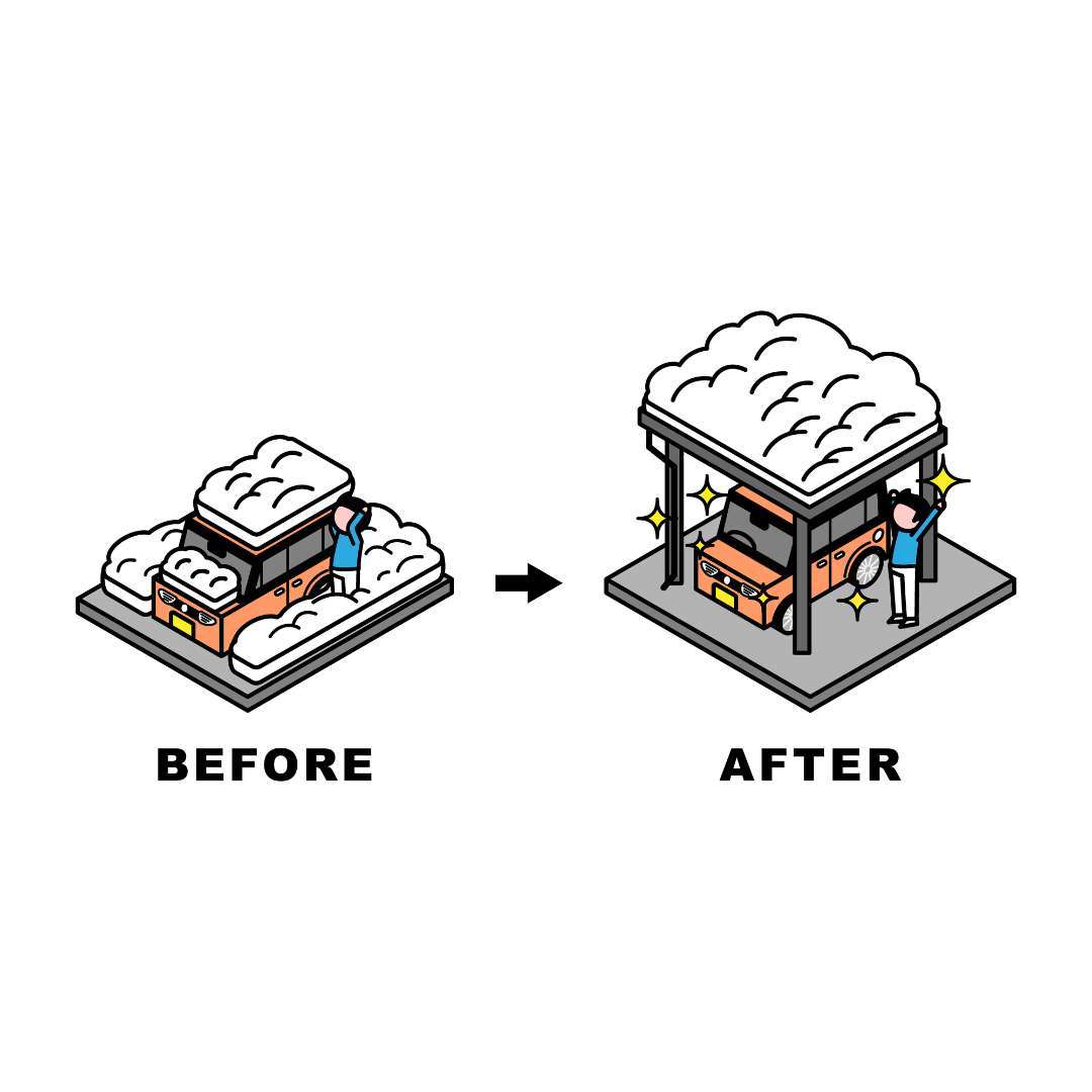 カーポートがあればこのようなトラブルを回避できるだけでなく、外出するたびに除雪する必要もなければ、車に乗り降りする時に雨や雪を避けることができます。