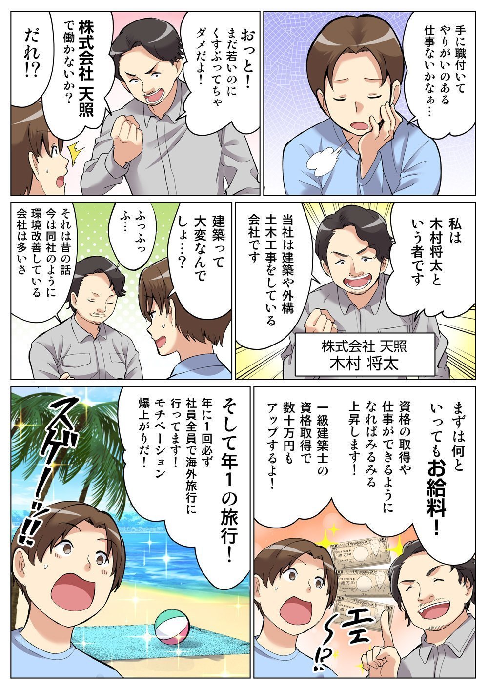 資格を取得するなど、技術の向上が見られると、そのぶんの賃金もアップします。常に社員のがんばりに注目しており、正当に評価をする体制があります。